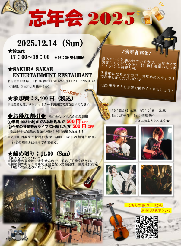 ★12月14日(日)「忘年会2025」@SAKURA SAKAE ENTERTAINMENT RESTAURANT★
